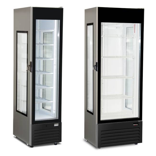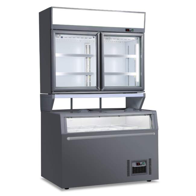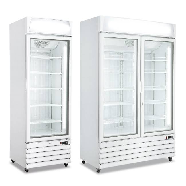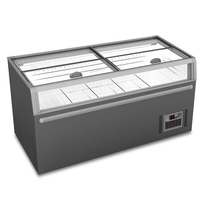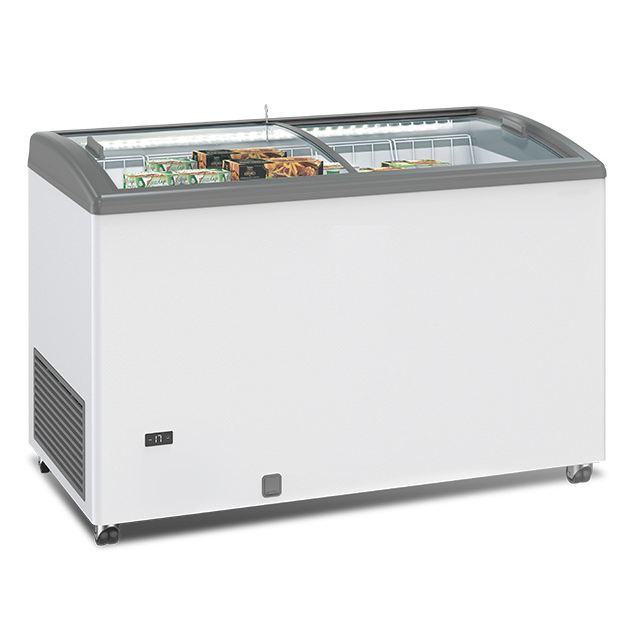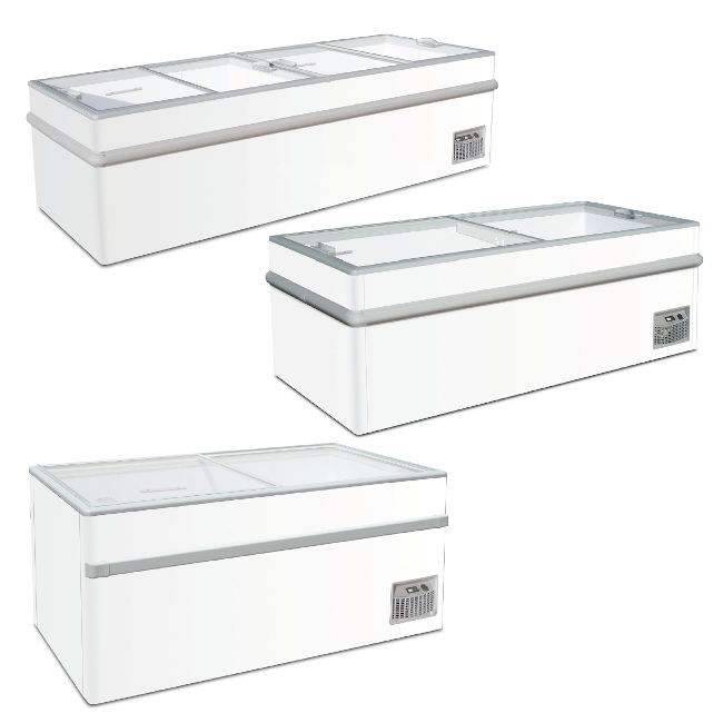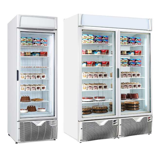 Freezer verticali a vetrina, mini freezer da banco, isole surgelati e congelatori orizzontali a pozzetto con porte solide o vetri scorrevoli panoramici.