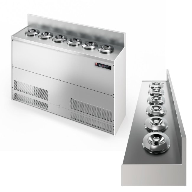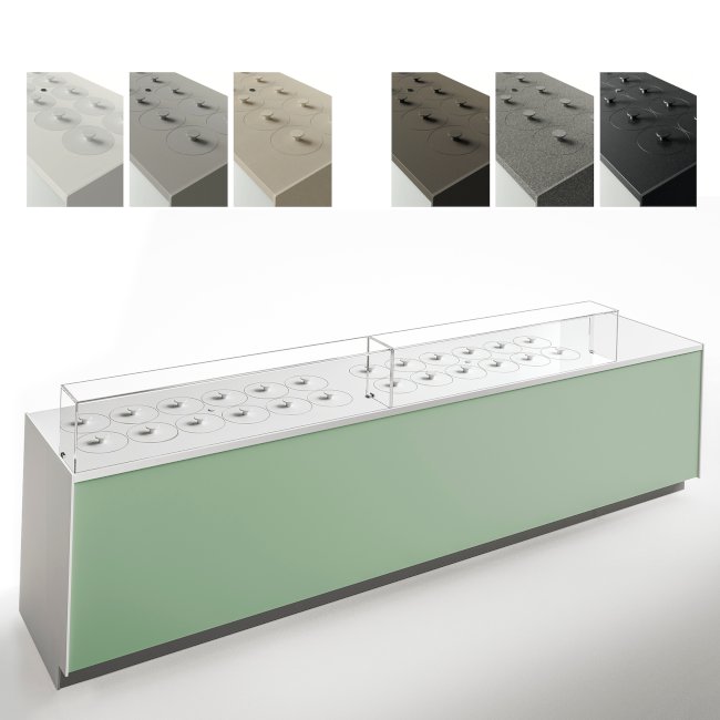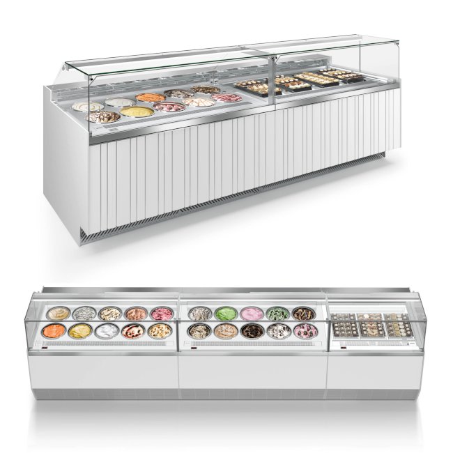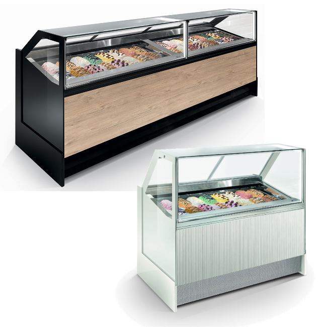 Banchi gelateria orizzontali per gelato mantecato in vaschette o pozzetti carapine.